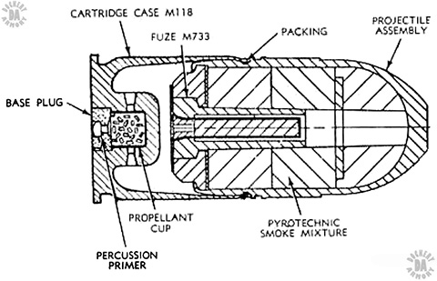 PROJECTILE TYPE – Flat-nosed aluminum-bodied projectile with red smoke composition