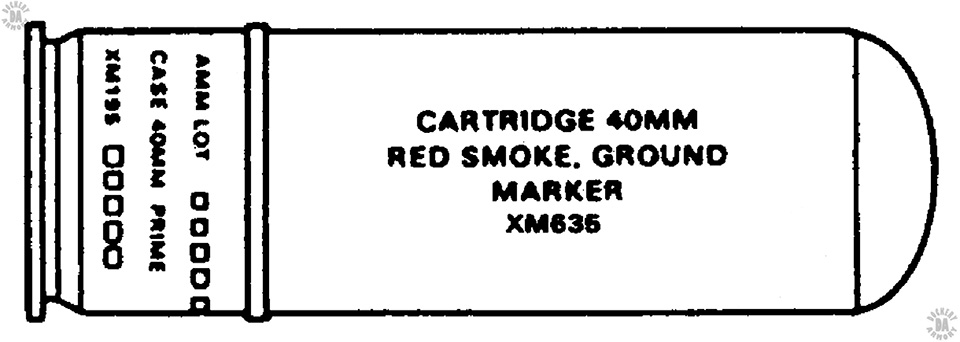 NAME – 40x46mm XM635 Yellow, Red, or Green Smoke Ground Cartridge
