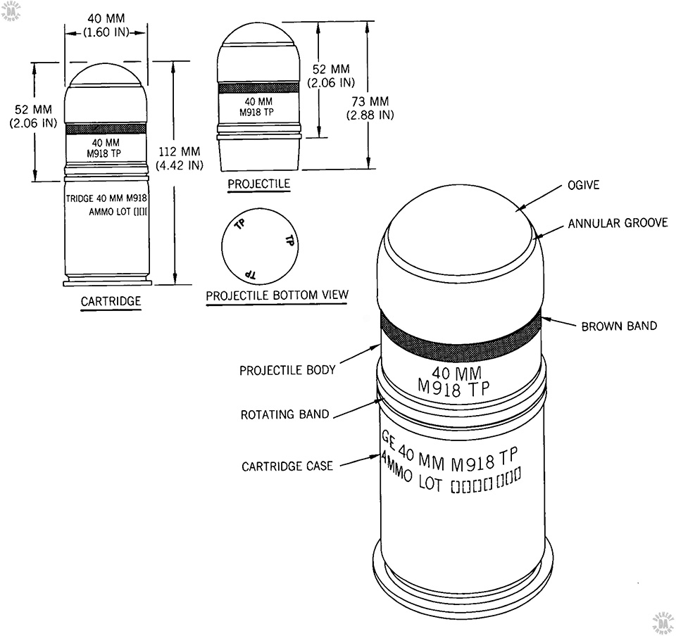 PROJECTILE DIAMETER – 41.20 mm (1.623 in) at rotating band