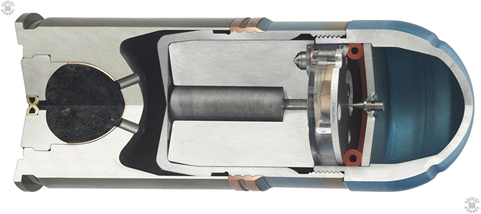 PROJECTILE TYPE – Steel projectile body with central aluminum capsule containing flash charge
