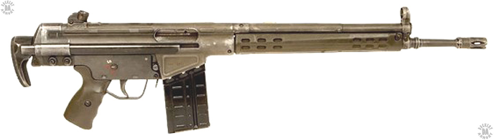 This was the standard version of the sliding-stock G3 rifle that served with the German Armed Forces as their primary rifle until 1997. It has all of the improvements learned from the earlier variation including a new muzzle flash hider built to NATO standards that could launch issue rifle grenades.