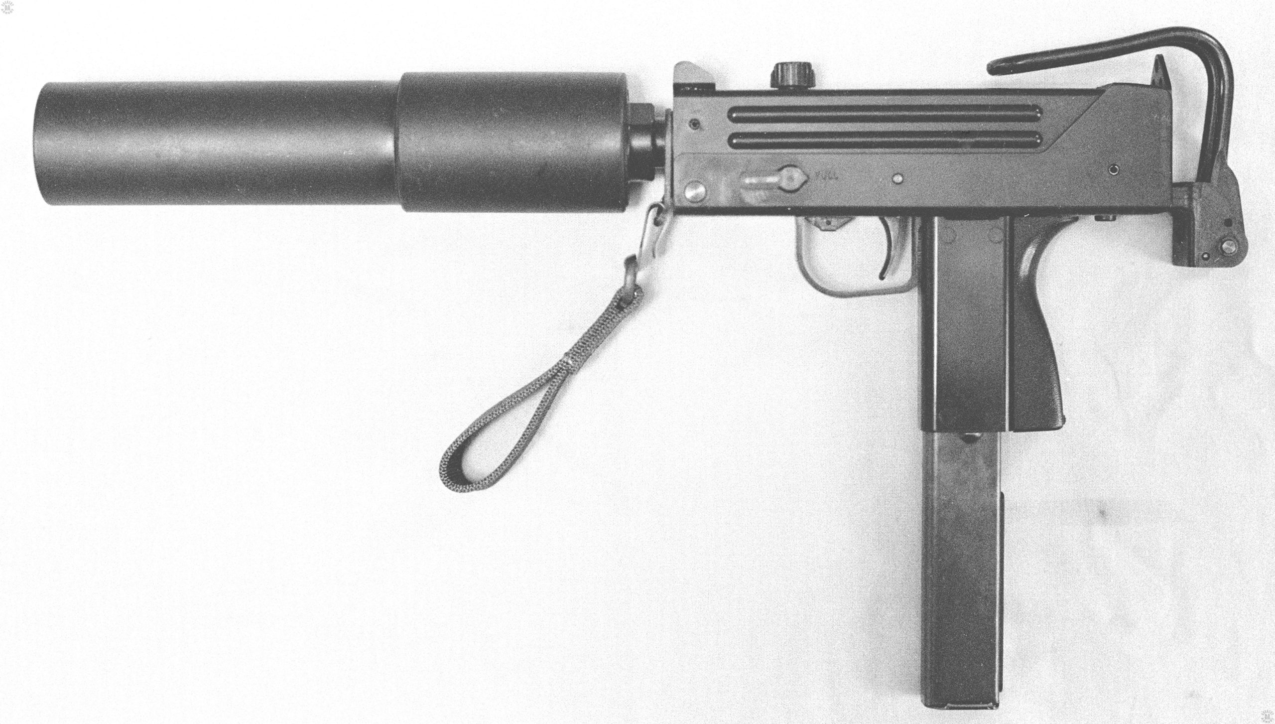This weapon was the smallest of the Ingram submachinegun family, being chambered for the .380 ACP or 9mm Short round (9x17mm). The weapon was easily small enough to be carried in a hip holster. The shorter 16 round magazine was intended for concealed carry as it barely extended out past the bottom of the pistol grip. In part because of the small length of the bolt travel on this weapon, it had the highest cyclic rate of fire of all on the Ingram family of compact submachineguns.