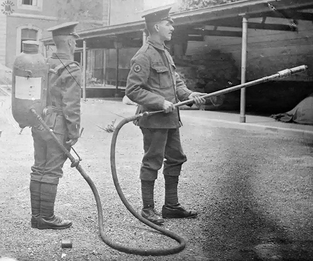 This weapon was a converted (improved) version of the Kleif Model 1912 version, which was the first production-model portable flamethrower used during World War I