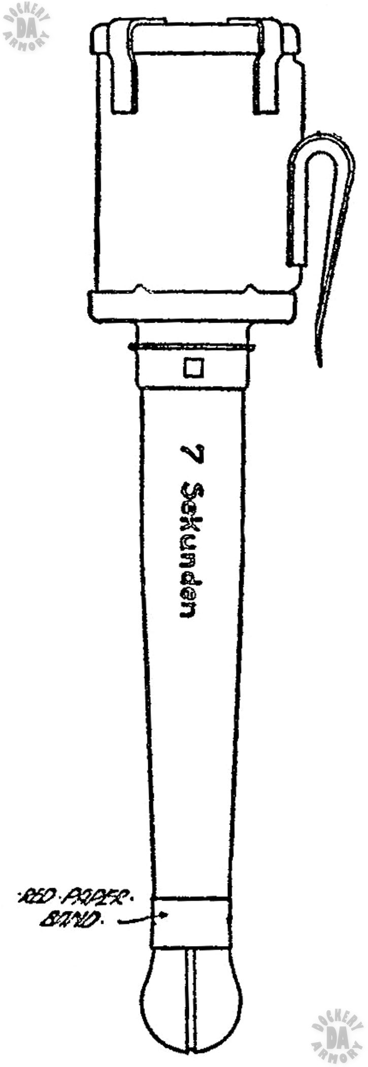 FILLER – German Military Powder – Ammonal variant (78% Ammonium Nitrate, 15% Tolite {TNT}, 3% Nitroglycerine, 4% Sawdust) – later production grenades were loaded with TNT