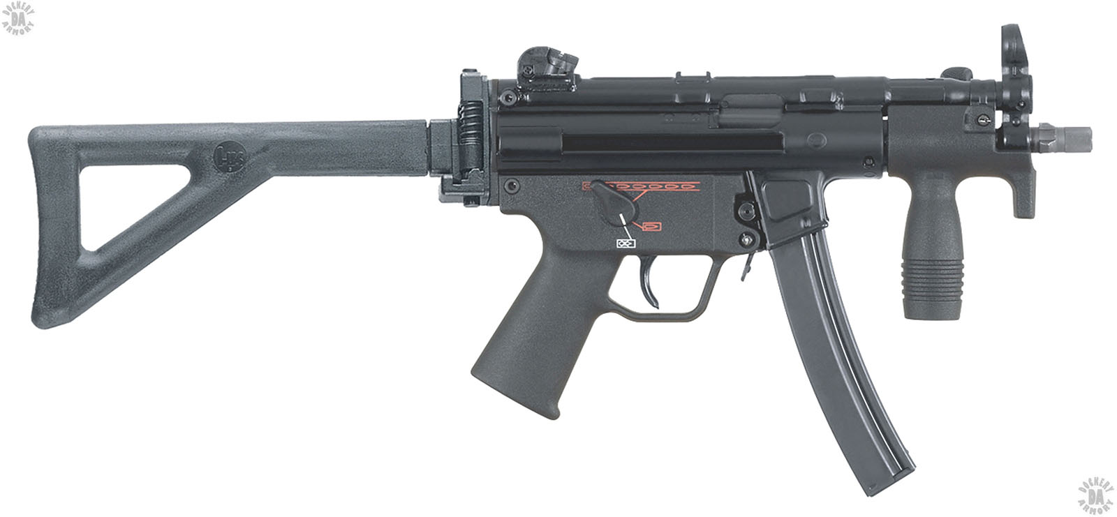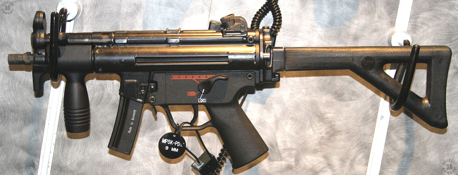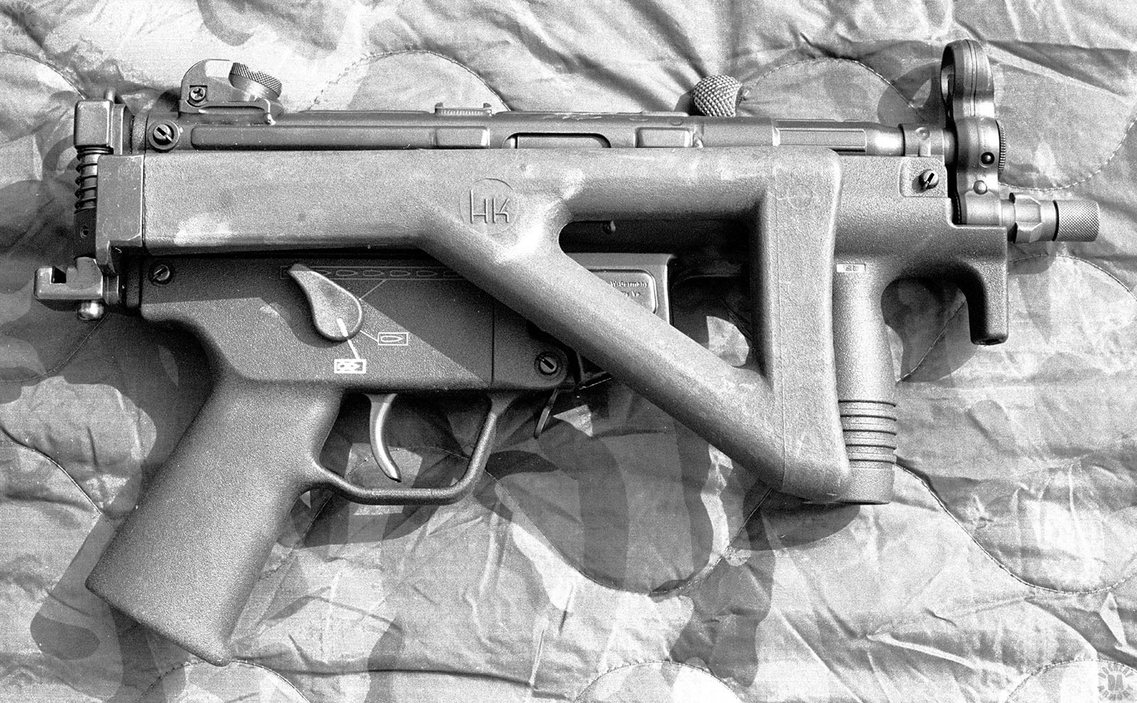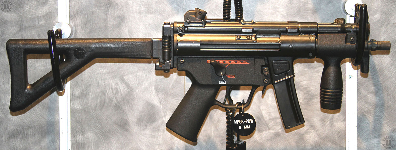 Effectively, this is the MP5K- Navy weapon fitted with a side-folding stock. Unlike the Navy weapon, the MP5K-PDW is issued with a 2 or 3-round controlled burst trigger group at the customer’s request.