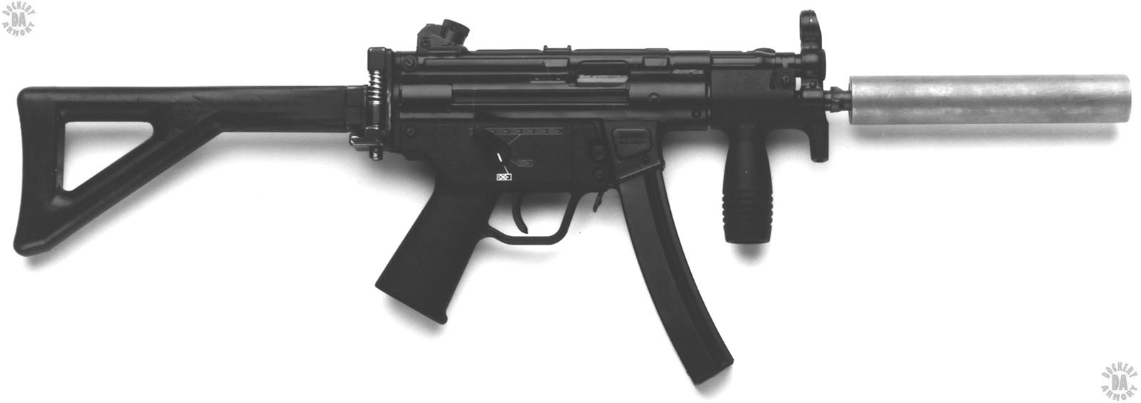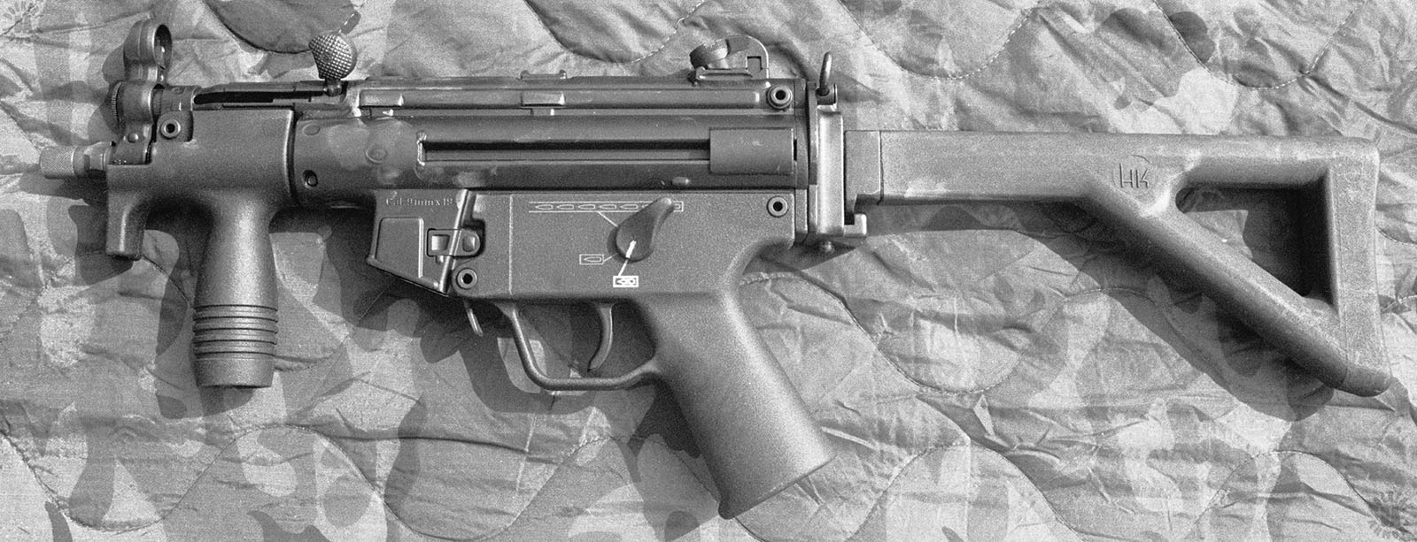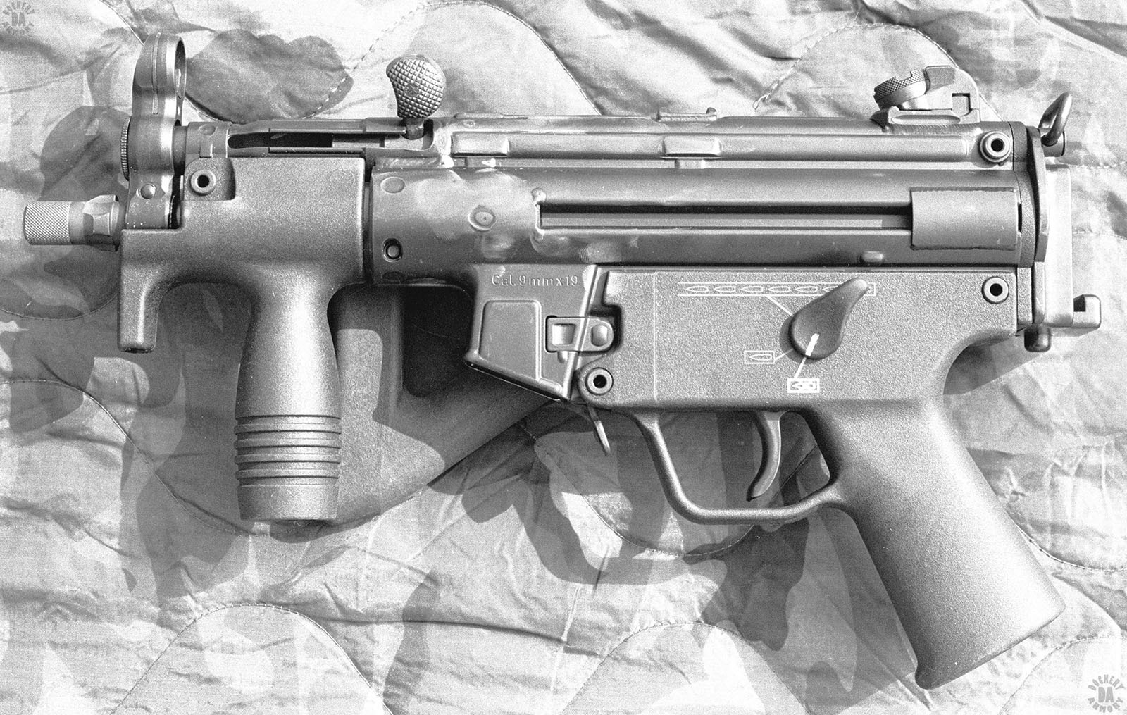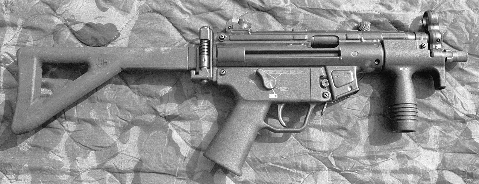 Effectively, this is the MP5K- Navy weapon fitted with a side-folding stock. Unlike the Navy weapon, the MP5K-PDW is issued with a 2 or 3-round controlled burst trigger group at the customer’s request.