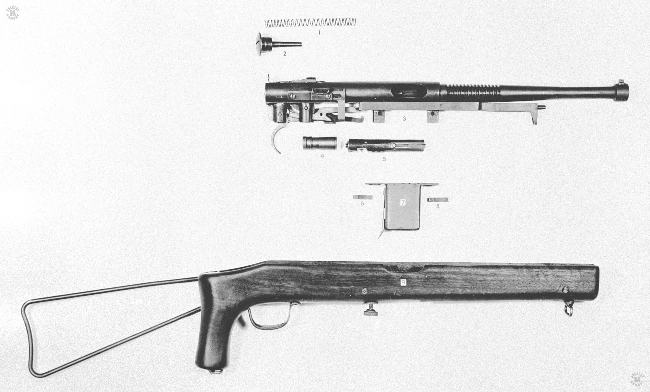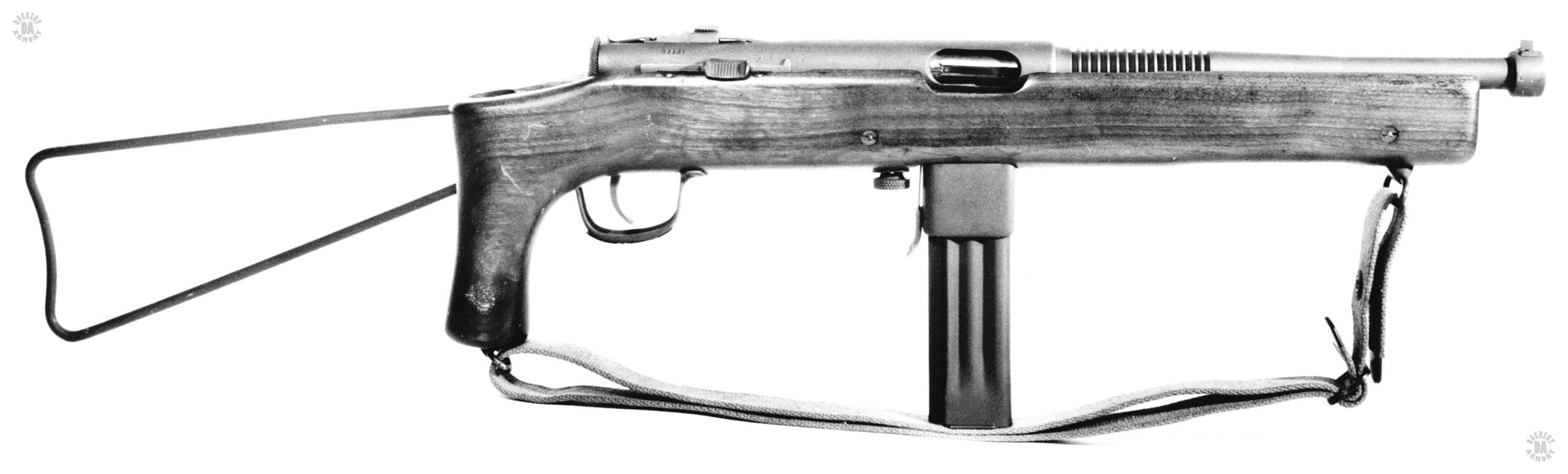 This is a shortened version of the Reising M50 with a wire folding stock, pistol grip, and no compensator on the muzzle. The weapon was intended originally for US Marine Paratroop units but they found it had the same drawbacks of difficulty operating in a dirty environment, as the Model 50. The wire stock was also found to be serviceable, but relatively weak. Another difficulty was that there was no means to lock the stock in the open position. Unless held carefully, firing from the shoulder could prove inaccurate as the stock would start to fold while being used. It did find additional use with vehicle operators and mechanized troops, primarily for its availability and short overall length. Production of this version ceased altogether in 1945.
