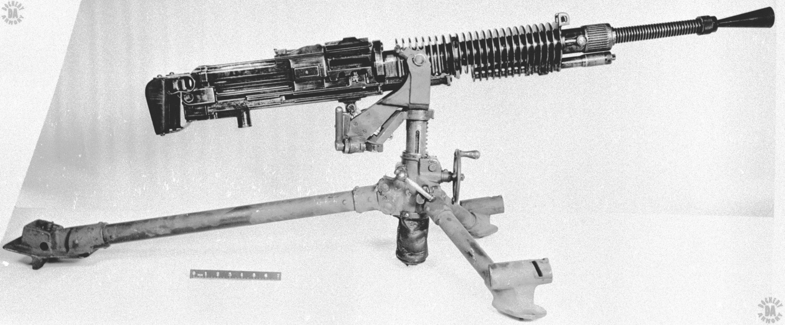 WEIGHT (MOUNTED & LOADED) – 54.78 kg (120 lb 12 oz) on tripod, loaded with 30 rds 6.5mm ball